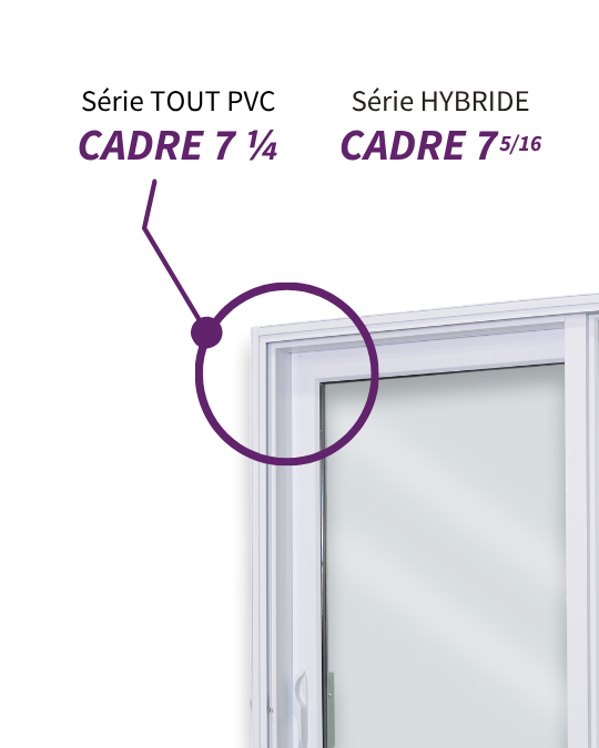 Dans la série HYBRIDE, des extrusions d’aluminium de calibre supérieur sont intégrées aux mêmes profilés de PVC, ajoutant une structure accrue à la porte patio, tout en préservant son isolation et son confort.